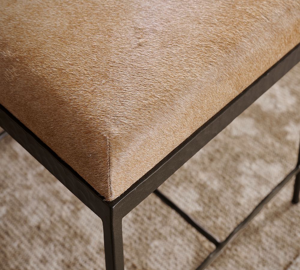 • Seat is upholstered in Natural Hide in Blonde and has thick foam cushion for true comfort.